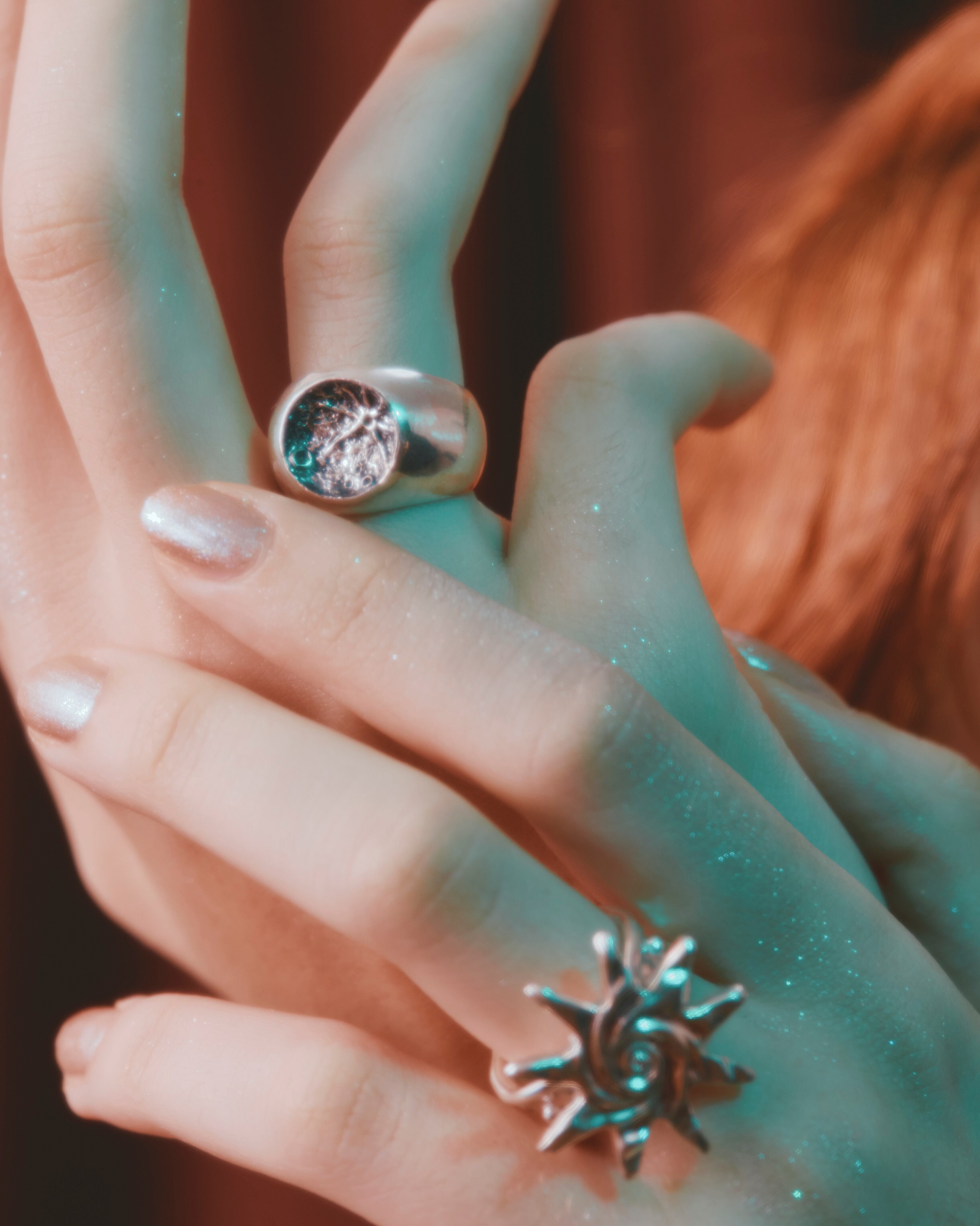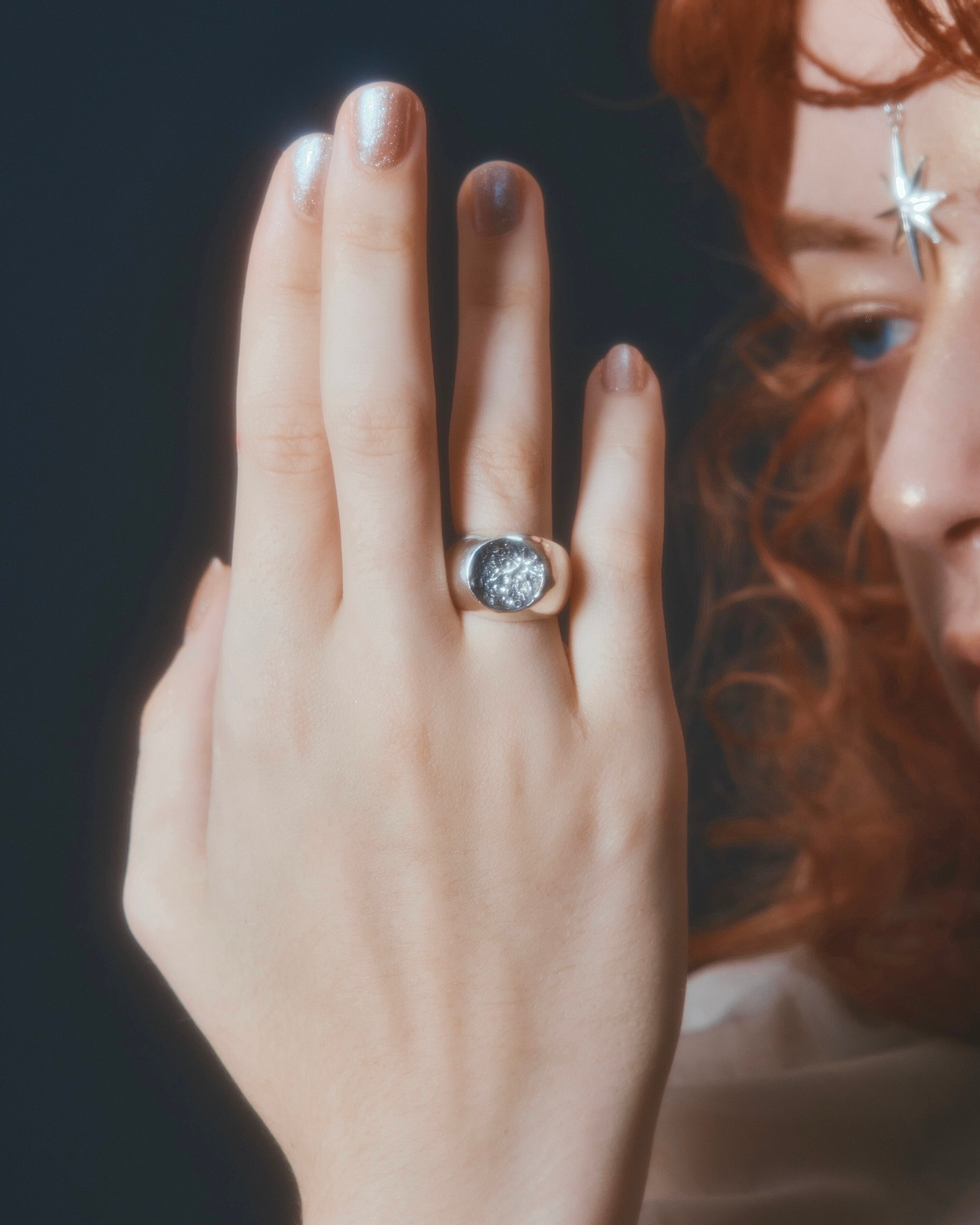 クレーター模様には燻加工が施され黒くなっております。