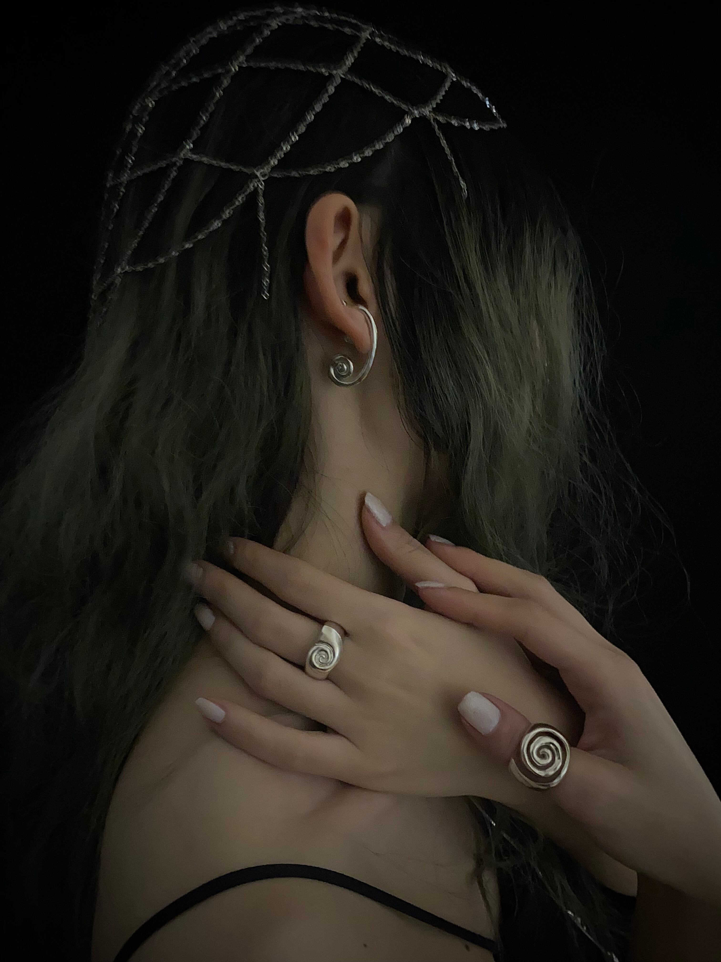 巻貝や胎児、発芽、生命の誕生をイメージしたリング。